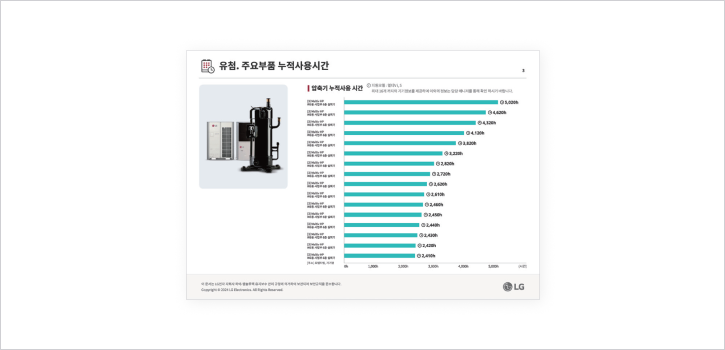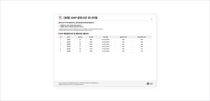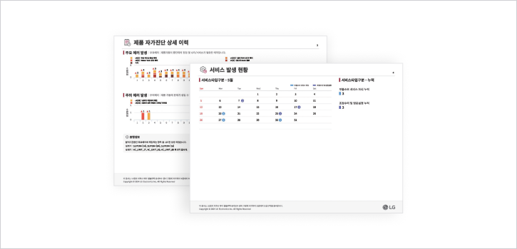 운전 현황을 포함한 고장 및 서비스이력을 리포트로 제공합니다.