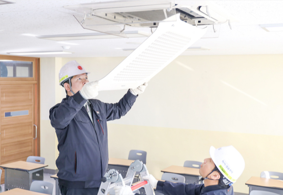시스템 에어컨의 성능 유지 및 재실자의 건강과 직결되는 쾌적한 실내 환경 유지를 위해 사용 초기부터 전문가에 의한 주기적인 유지관리가 반드시 필요합니다.